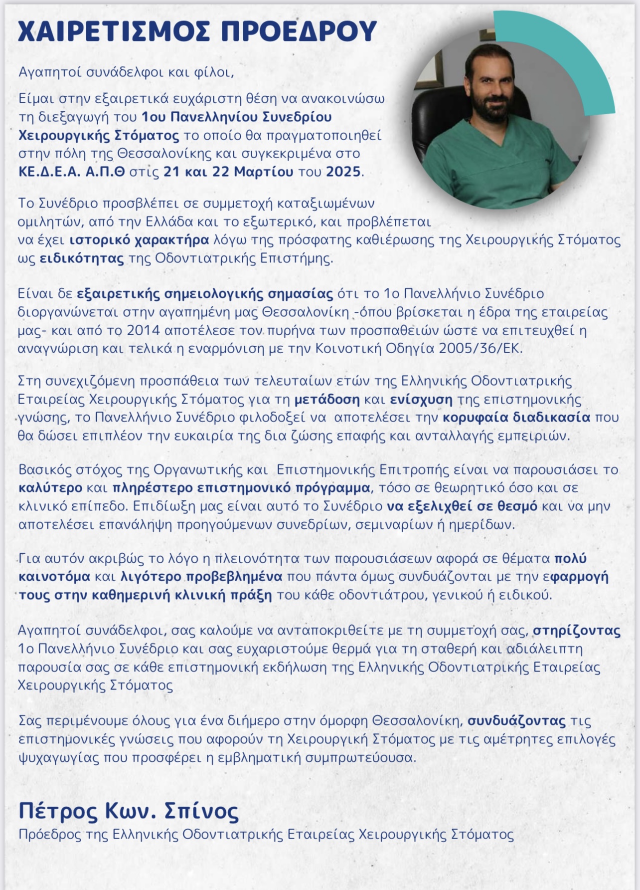 1ο ΠΑΝΕΛΛΗΝΙΟ ΣΥΝΕΔΡΙΟ ΧΕΙΡΟΥΡΓΙΚΗΣ ΣΤΟΜΑΤΟΣ